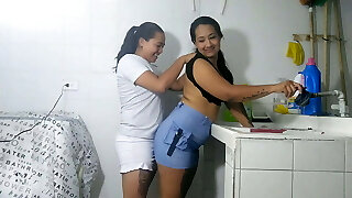 Cruel all girl nail lower brunette slut Bijou tied up her young girlfriend Mandy Bright and loving spanking her ass.