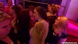 les filles salopes font la fête dans le bar de nuit, s'enivrent et ont des aventures de sexe de groupe