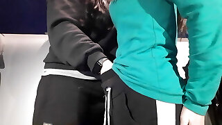 偷窥带一个亚洲lezzie和直夫妇具有fuckfest在公共