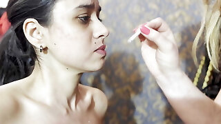 Two Lesbian Dominating a ash-blonde